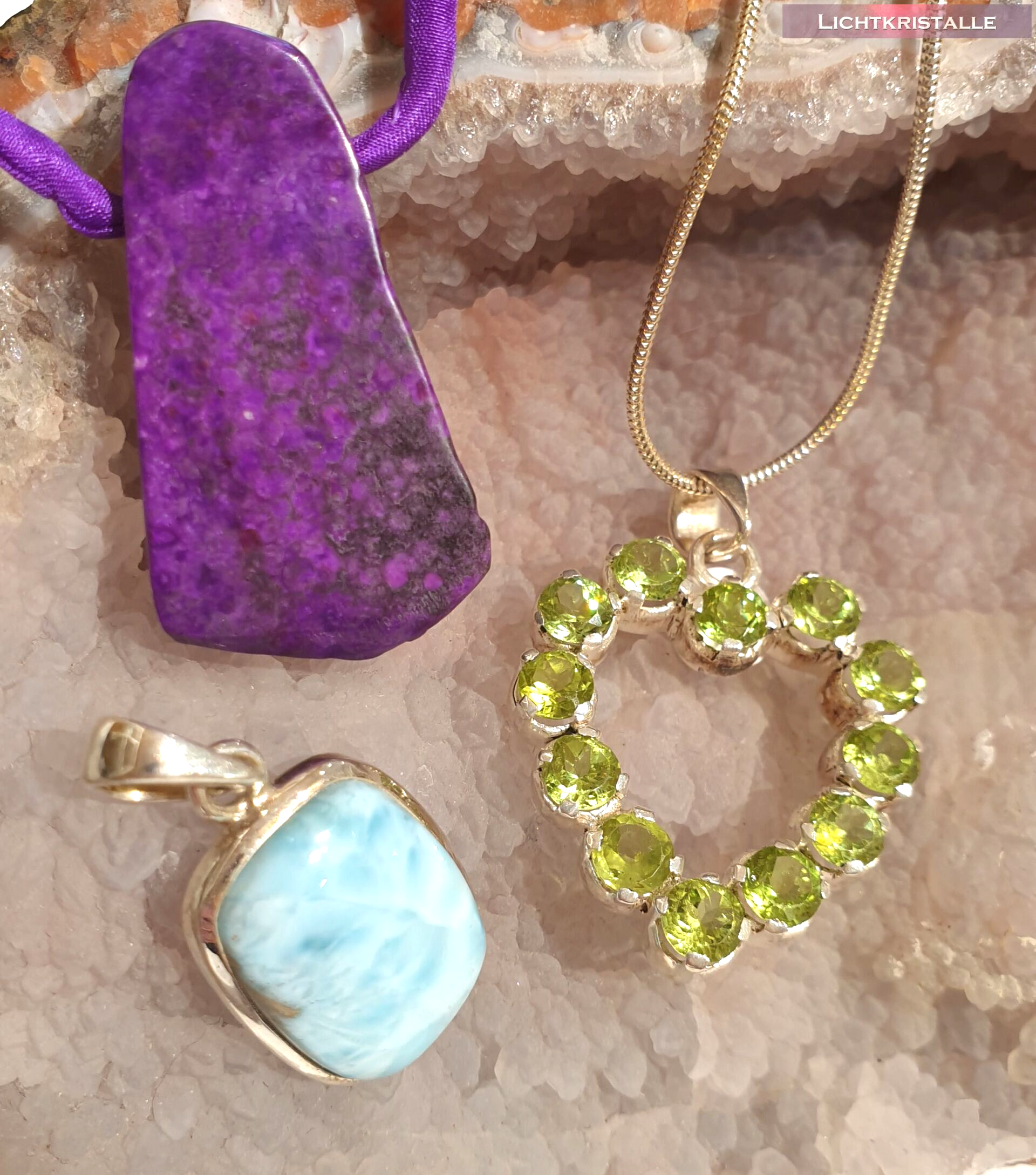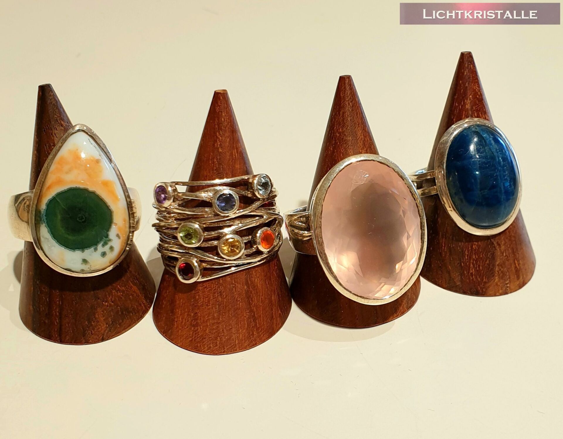 Was wir nicht können, zum Beispiel in Silber fassen, kaufen wir bei unseren Lieblingshändlern. Ok, das ist auch toll, weil wir jedes Mal staunend vor den wundervollen Steinen in hochwertiger Verarbeitung stehen. Die allerschönsten Stücke dürfen dann mit, in unseren Laden und ab jetzt auch in unseren Shop.